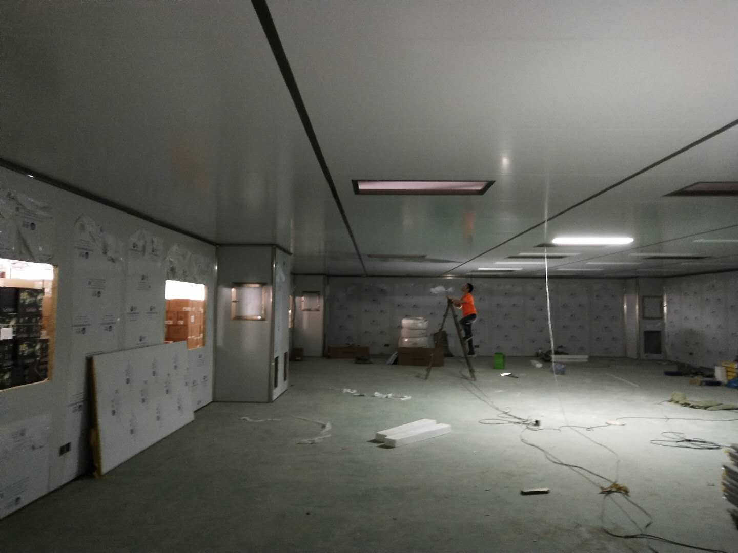 潔凈度的實現(xiàn)是通過布置在車間上的FFU高效過濾送風單元過濾,足夠的換氣次數(shù)來實現(xiàn)的,新風采用初效過濾后送入車間。